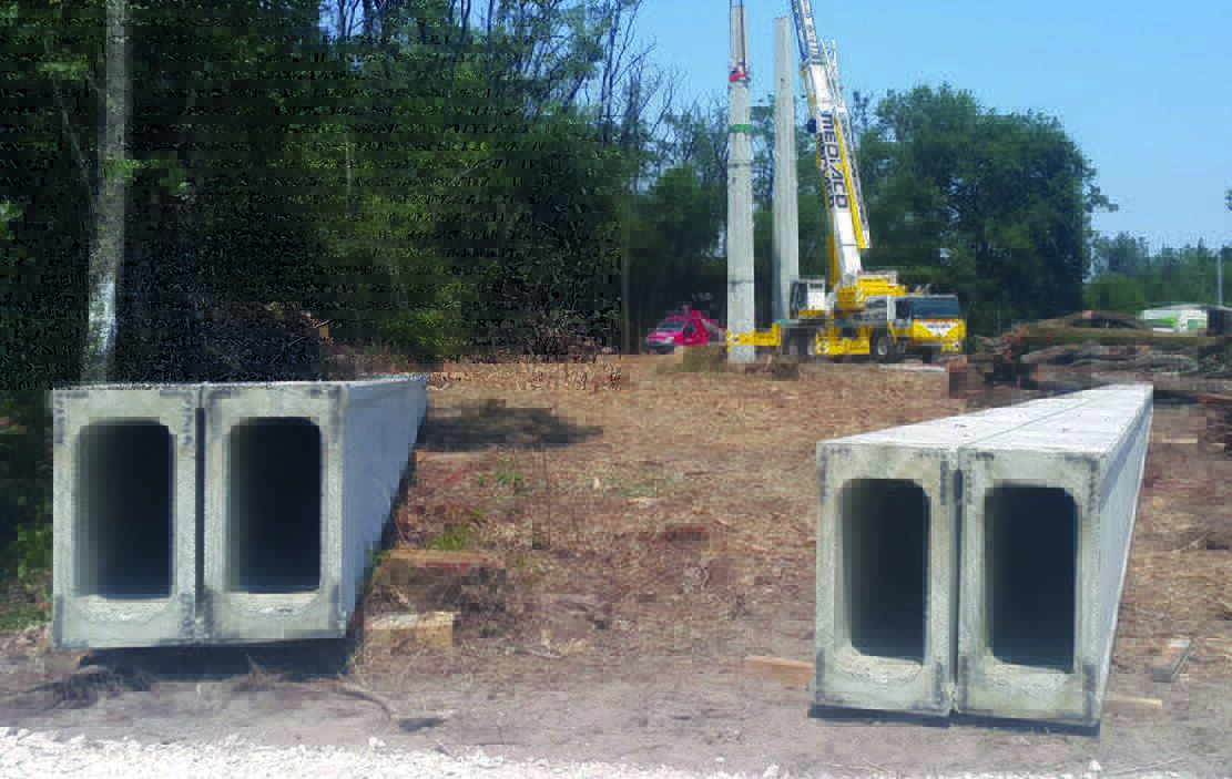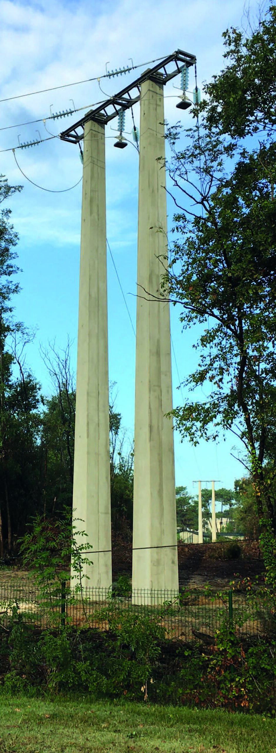 « La demande est très spécifique, explique M. Quenescourt, Manager Projet à RTE Centre de Développement Ingénierie de Toulouse. La ligne électrique est tenue de suivre le tracé de la future enceinte qui impose parfois des angles proches des 90°, totalement inhabituels sur nos réseaux. Les efforts mécaniques en tête de poteau sont donc conséquents, surtout avec les vents de ce secteur. De plus, une hauteur libre au-dessus du mur était également à respecter. Une liaison souterraine n’était pas envisageable en raison des délais. La préférence s’est donc portée sur des poteaux monopodes. L’avantage est d’avoir une faible emprise au sol et le support reste relativement discret. Le jumelage était une réponse aux contraintes, avec des poteaux 2 x 32 kN en 20 m de haut.».